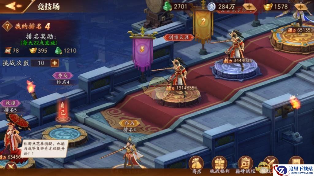 我们一定要在角色培养到30万战力左右之后,赶紧冲刺竞技场,即使我们无法到达第一,也最好冲刺到前十领取挑战福利,领取的装备直接给t就可以。