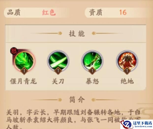 11资质的紫色武将有3个技能,1个必杀技,2个普通技能。