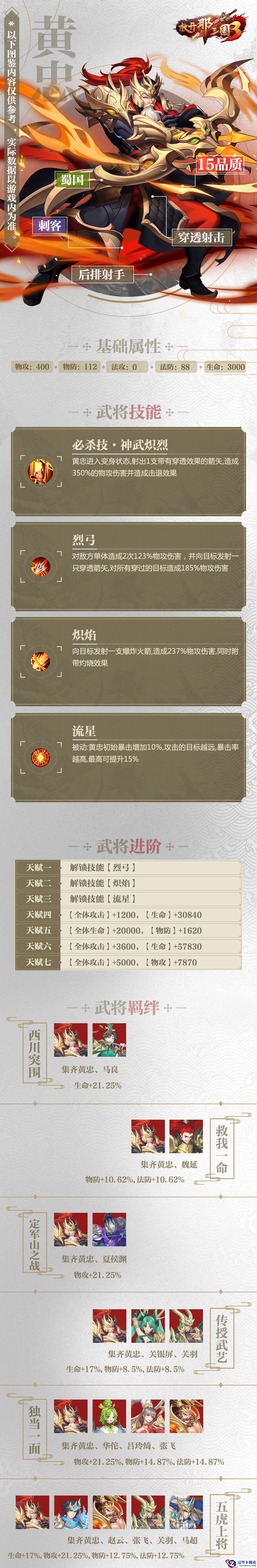 以上就是小编整理带来的《放开那三国3》黄忠属性技能羁绊图鉴介绍,更多精彩内容,请点击关注手游网,小编将持续为您更新!