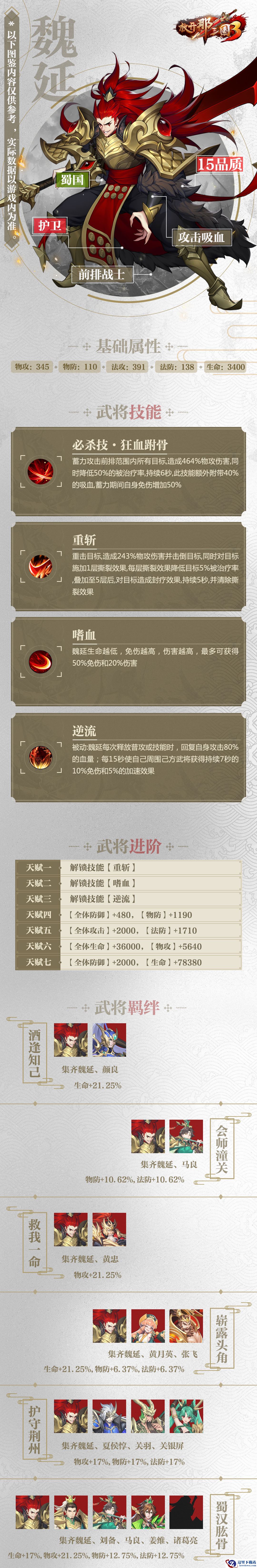 以上就是小编整理带来的《放开那三国3》魏延属性技能羁绊图鉴介绍,更多精彩内容,请点击关注手游网,小编将持续为您更新!