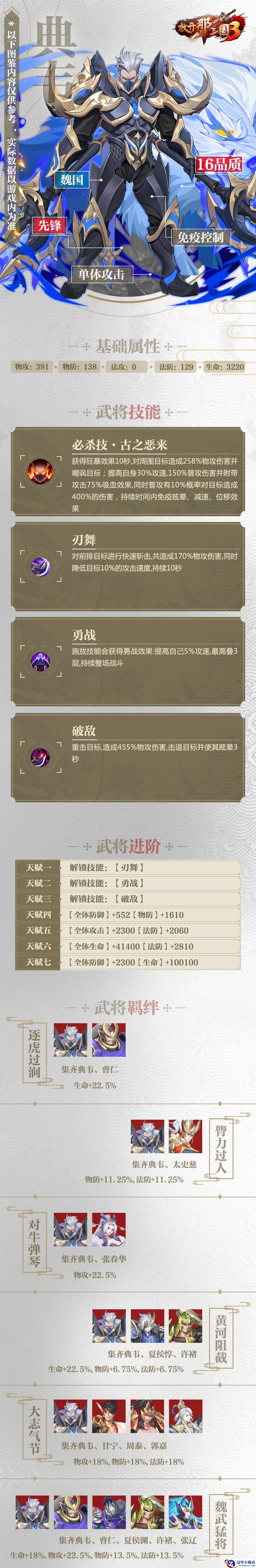 以上就是小编整理带来的《放开那三国3》典韦属性技能羁绊图鉴介绍,更多精彩内容,请点击关注手游网,小编将持续为您更新!
