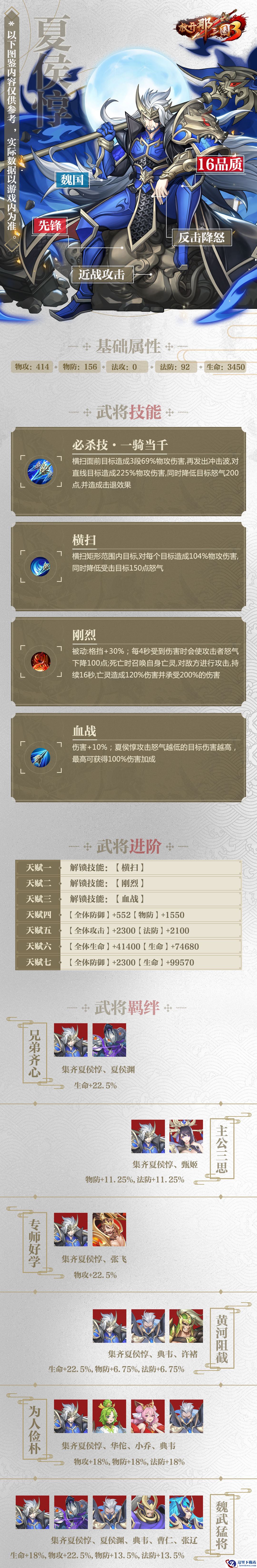 以上就是小编整理带来的《放开那三国3》夏侯惇属性技能羁绊图鉴介绍,更多精彩内容,请点击关注手游网,小编将持续为您更新!