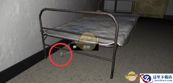 药物:位于钢丝床下,需要蹲下来才可以看到,如图位置。