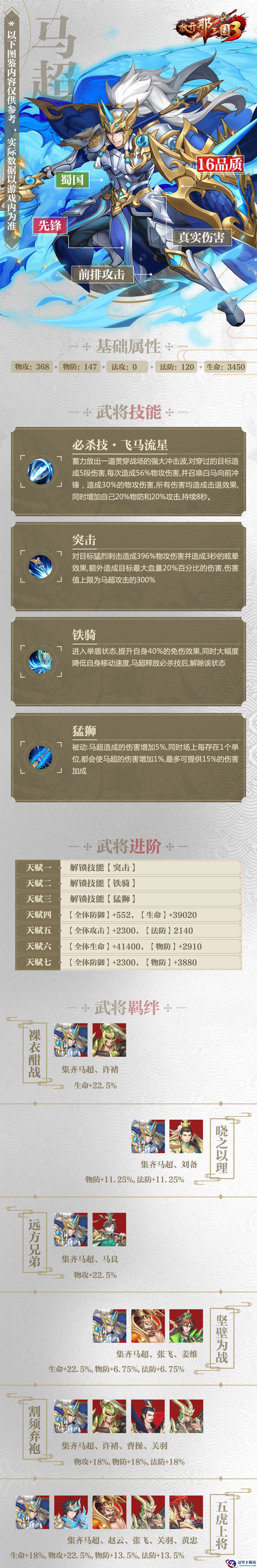 以上就是小编整理带来的《放开那三国3》马超属性技能羁绊图鉴介绍,更多精彩内容,请点击关注手游网,小编将持续为您更新!