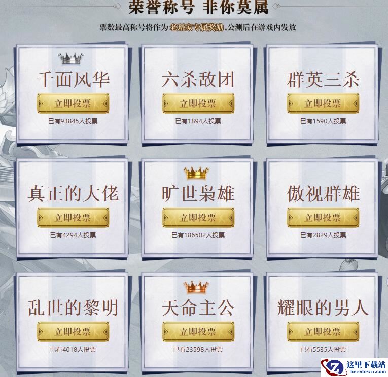 2、活动结束后,获得投票数最多的称号,在游戏公测后,可获得此荣誉称号。