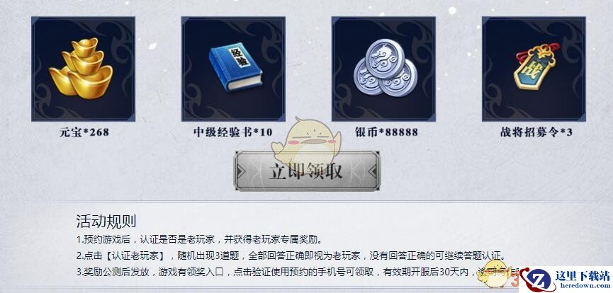 1、预约游戏后,认证是否是老玩家,并获得老玩家专属奖励。