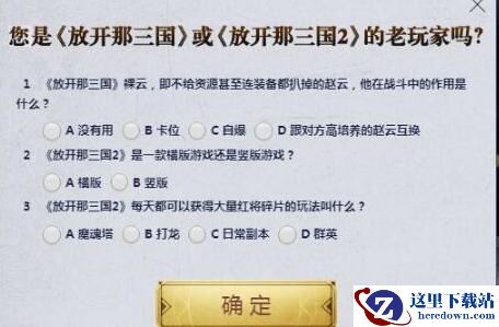 以上就是小编整理带来的《放开那三国3》老玩家认证答案介绍,更多精彩内容,请点击关注手游网,小编将持续为您更新!
