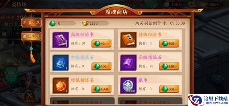 竞技商店:玩家可使用竞技场声望购买道具、武将碎片及养成资源。