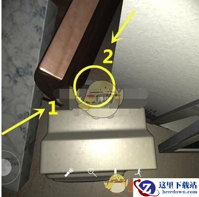 信封:在402室床头的地下,需要先点一下1处(如图),然后在2处可以获得线索。
