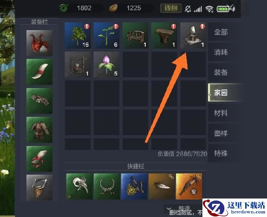 2、将家园拆完之后,打开自己背包,找到息壤并放置在合适的位置。