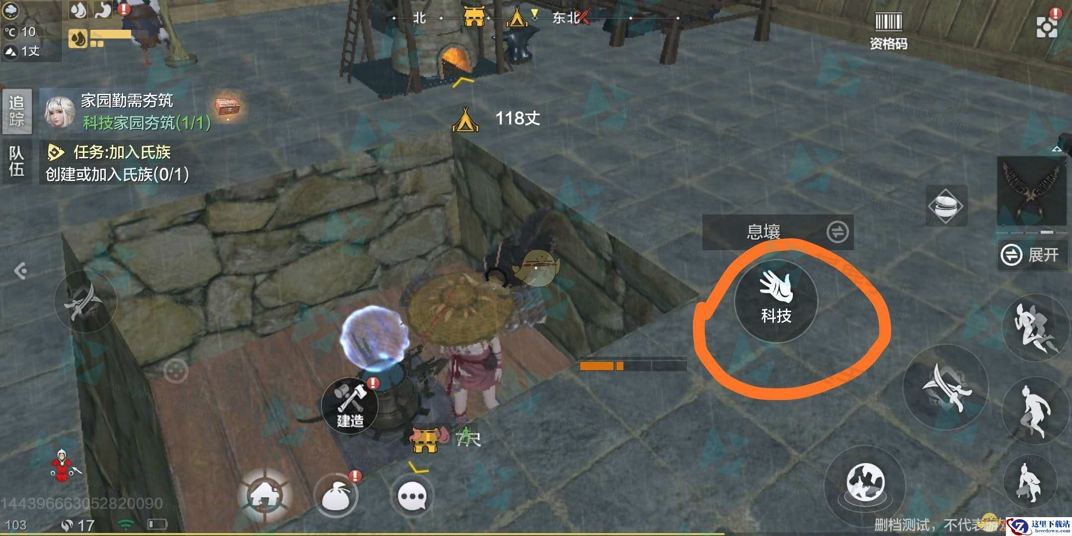 2、在家园中,靠近息壤的位置后画面中会出现科技按钮。