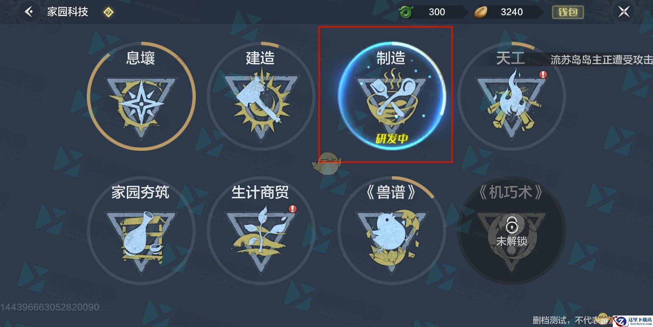 3、在家园科技界面中,我们可以看到很多建造选项,此时点击制造。