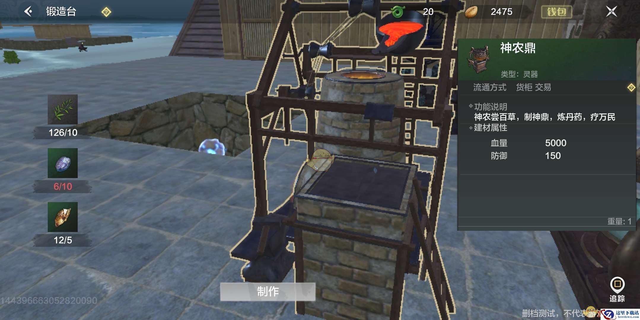 6、在完成了前置任务后,我们就可以开始神龙鼎的制造了,需要绿草、矿材和石头。