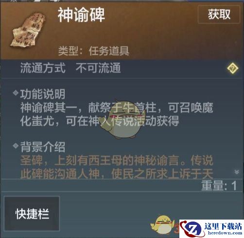 用于神兽图腾可召唤出百年千年万年级boss和围狩图里的神兽。(刷高等狩猎图腾献祭奖励几率掉落)