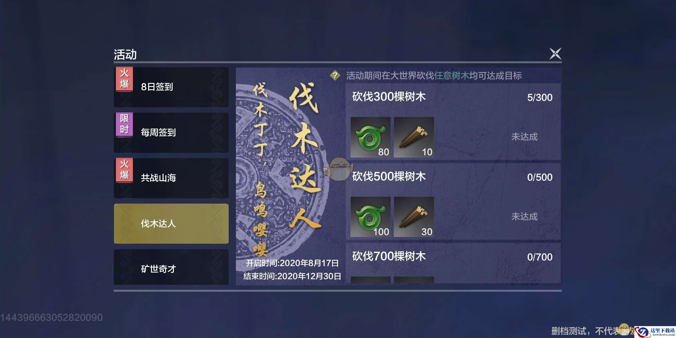 3、例如伐木工人的活动,完成伐木数量就可以获取对应的脂玉奖励。