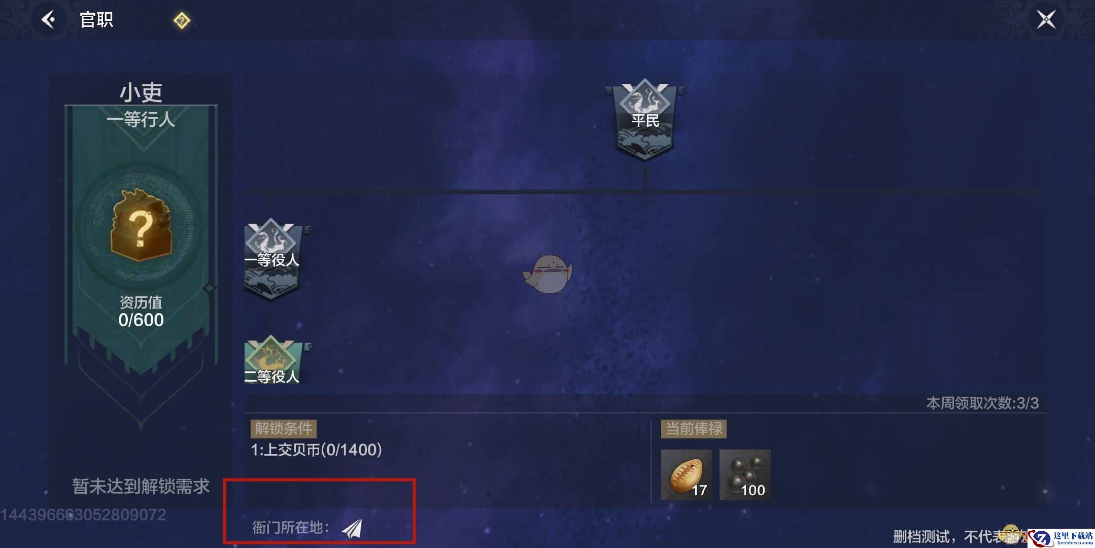 2、注意官职界面的衙门所在地图标,点击后可以在地图上显示衙门的位置。