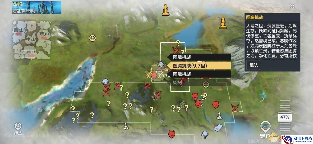 2、图腾分为三种类型,一个是战斗图腾击杀怪物可以获得贝币,而狩猎图腾击杀怪物无法获得贝币,但尸体可以搜寻获得该怪物的附属产品,当你到了一定装备之后可以去刷更高级别的图腾,更高级别的图腾在地图上的显示是这样的。