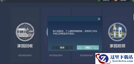 选择家园回收、会提示哪些家具会跟随回收,点击确定即可。