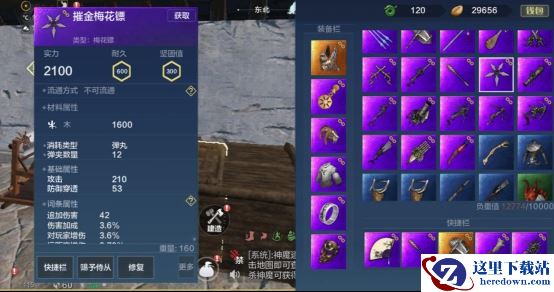 梅花镖每次射击打出两发子弹,射速中等,换弹速度中等,弹药类型为弹丸,一个弹夹有12发子弹(弹夹容量会随武器品质而变化,变化量不大)