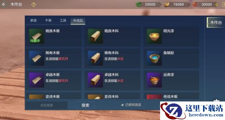 解锁之后在木作台中制作鱼竿。绿色品质的鱼竿需要的材料并不复杂。