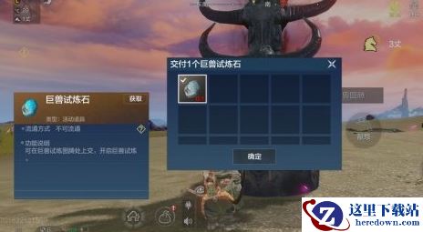 靠近神兽图腾选择献祭巨兽试炼石,等待一段时间就会开启。