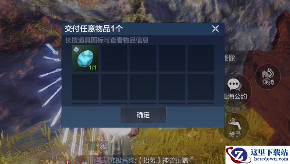 4、到达神秘雕像脚下后,点击给予,就能点击提交任务物品,从而完成任务了。
