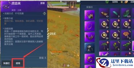 1、选一块风水宝地,点击使用。虎齿夹会自动放到旅者脚下。