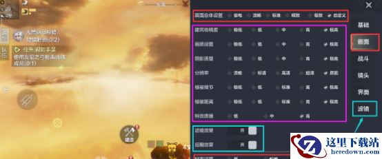 为了达到更好的游戏效果,游戏中提供了画质、帧率和滤镜的相关设置: