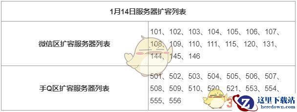 本次更新后,我们将会于1月14日上午10点分别开放一个微信新服和一个手Q新服,另外也会对目前部分注册已满的服务器进行扩容,具体扩容列表如下