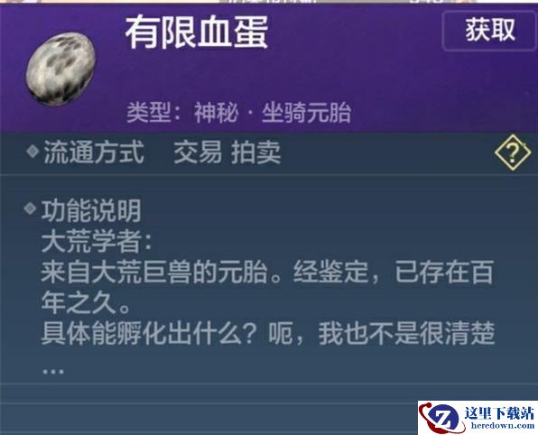 1、有限血蛋是地图中随机刷新的野外的宠物蛋。