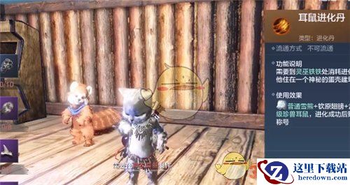 其中陨铁在陨石处开采获得,火烜角可以去打八千年石烜及万年冰烜火烜概率获取。灵狐毛皮打五千年丘狐,八千年玉狐,万年凛狐火狐概率获得。收集这些材料合成进化丹后,就能去找灵巫铁铁进化耳鼠了,非常呆萌。