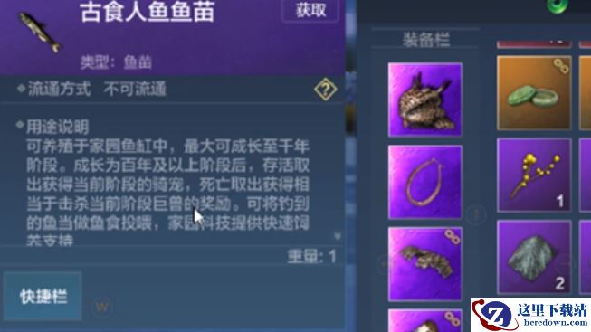 首先当前版本鱼苗的等级上限就是千年,不存在万年鱼苗的说法,至今也无人钓出万年鱼,最高品质也是紫色的千年鱼苗,比如上图的古食人鱼鱼苗,最高可成长到千年阶段。