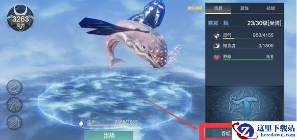 打开宠物界面,选择已经吞噬,改变模样的异兽。点击下方的吞噬按钮。