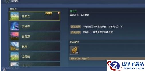 我们每以及一个风景点可激活山海经中的任务可获得永久属性50点生命或者2点防御并且获得200贝币。