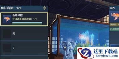 然后玩家可以放在鱼缸里面,进行养鱼,如果你把这个锦鲤给养活了,就可以得到三个锦鲤兑换券,如果不小心没有活下来,那么只能得到一个锦鲤兑换券。