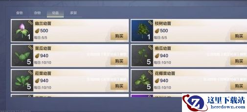 点击种子键,可以将低等级的菜苗合成高等级的,例如胡荽、鹅仔菜等。