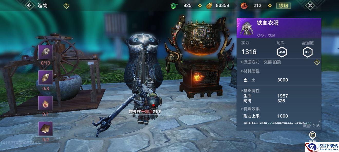 以上就是《妄想山海》铁血衣服制作材料一览的全部内容了,更多手游攻略请关注这里下载站!