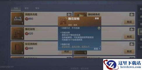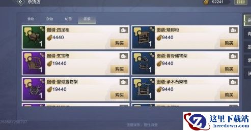 家园灵器貔恘台打开之后,杂货店最后一个分类,您可以在这里通过使用贝币,购买一些高级柜子的配方。