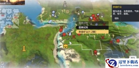 2、赤金矿山千年羽瞿的具体位置如下图所示,玩家可以前往此地寻找一番。