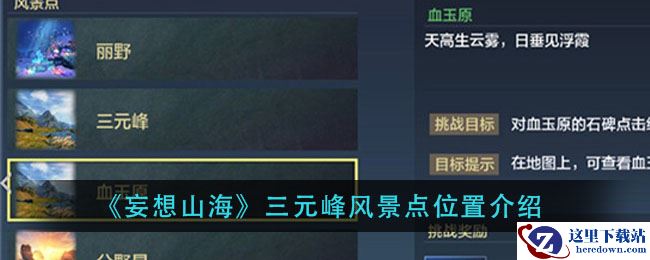 以上就是《妄想山海》三元峰风景点位置介绍的全部内容了,更多手游攻略请关注这里下载站!