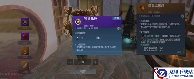 驺吾的进化丹可在三级神农鼎制作,材料是八个灵狐元神,八个狻禄元神,八个万年兽魂,以及10个霏雪骨,金色品质,获取途径尚未公布。