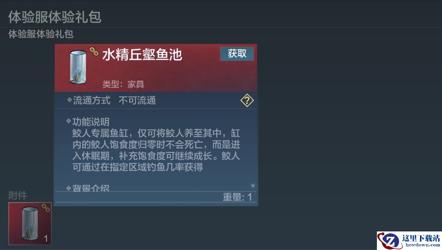 鲛人专属鱼缸,仅可将鲛人养至其中,缸内德鲛人饱食度为零时,不会死亡,而是进入休眠期;普通万年鱼缸也可以养人鱼,但是有可能养死,使用这个鱼缸养不死