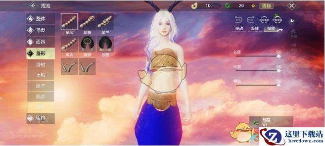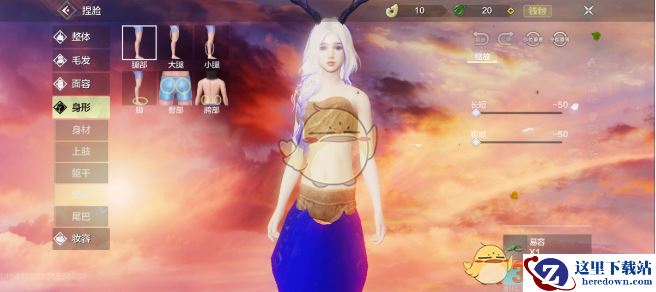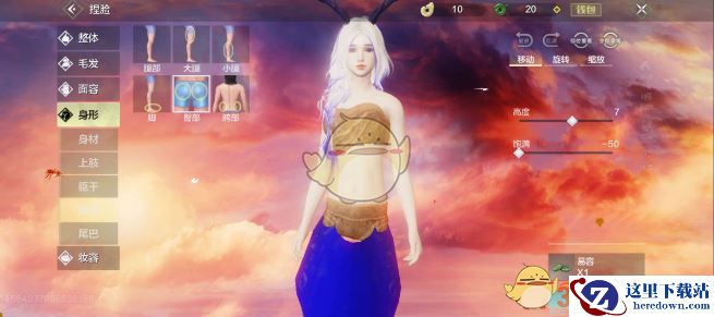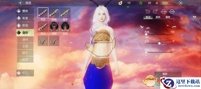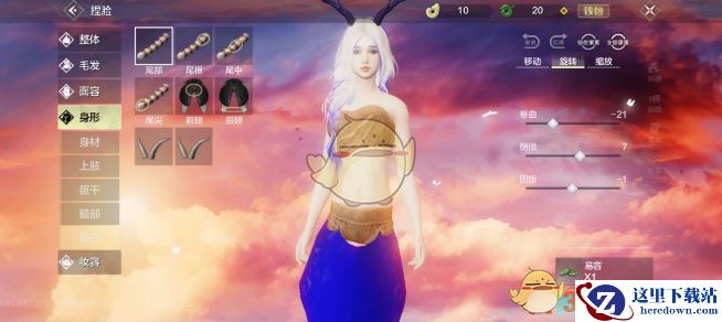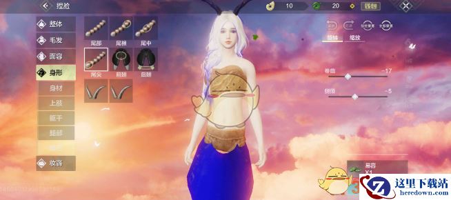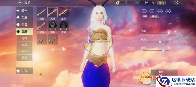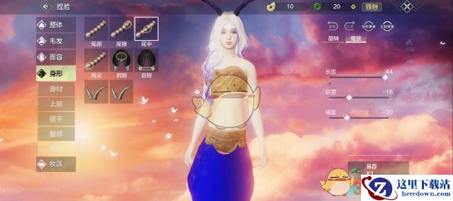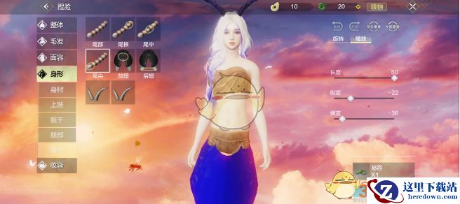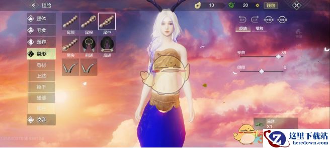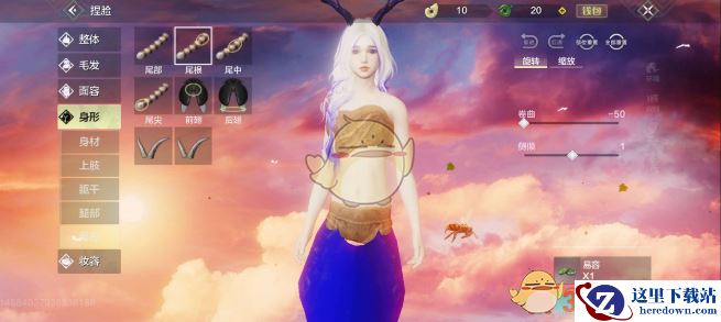 人鱼的尾巴最为重要,尾部和尾根这两个是最主要的部分,各位小伙伴调整时一定要注意,别调错了,错了就不像人鱼了。