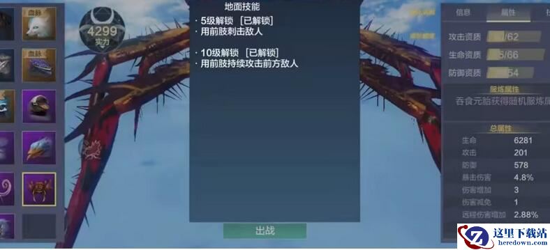 其攻击和防御资质比较优秀,生命资质略低。但是可以通过吞噬元胎的方式来进行属性上的提升。