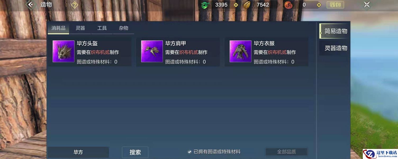 1、首先得获得制作“毕方装备”的基本材料,其中“毕方头盔”需要毕方头盔图谱*1+千年兽魂*1赤白喙*5+卓越布料*1+黄金甲片*2;“毕方肩甲”需要毕方肩甲图谱*1+千年兽魂*1+赤白喙*5+卓越皮料*1+黄金甲片*2;“毕方衣服”需要毕方衣服图谱*1+千年兽魂*1+赤白喙*5+卓越皮料*1+黄金甲片*2。