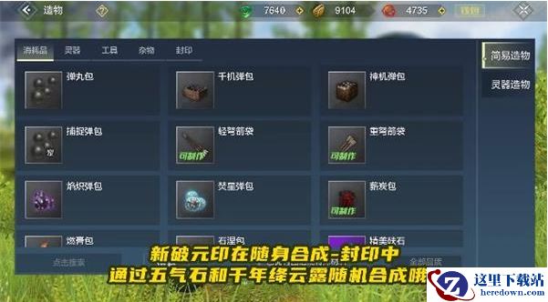 通过翠雾露,可以在随身合成-封印中搭配五气石合成新的破元印。其中,五气石由2星群侠掉落。