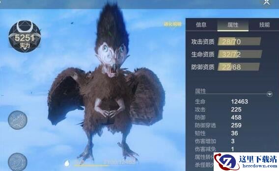 颥鸟资质比较平均,没有特别突出的地方,比野生的少了石化和无敌两个核心技能,这个宠物在游戏里非常少见,很少看到有人骑,而且蛋还很便宜。