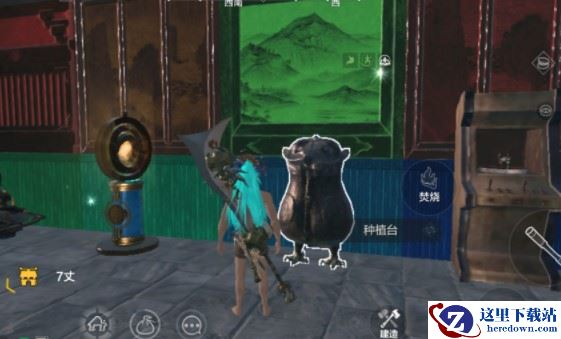 1、来到家园里的种植台前,同时按下焚烧键和右上角的哨子键位