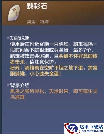 1、首先玩家可以通过使用鹞彩石来召唤一只鹞雉。