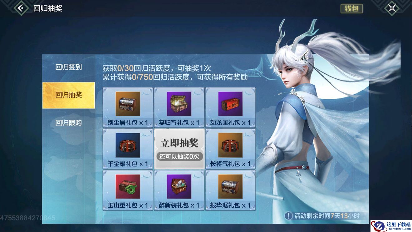 本次回归活动分为三个部分,分别是【登录礼包】【活跃抽奖】和【大折扣回归礼包】。